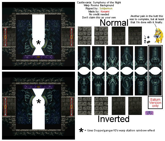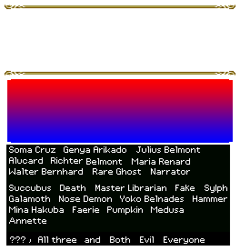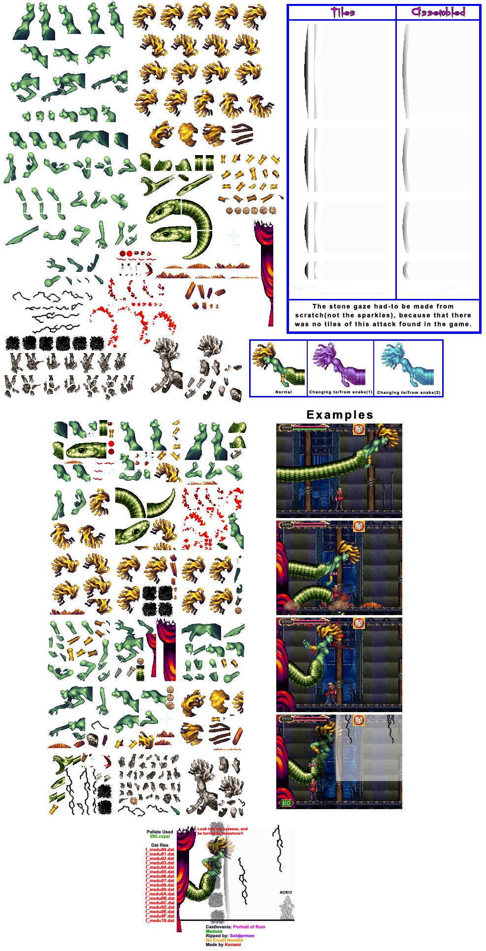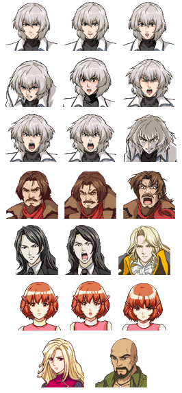 On a side note: If you plan on using these in your comics or websites, make sure you use the proper program(s); such as Adobe Photoshop for example, to get the pull potential of these. Code LoI - Lament of Innocence SotN - Symphony of the Night RoB - Rondo of Blood HoD - Harmony of Dissonance AoS - Aria of Sorrow DoS - Dawn of Sorrow PoR - Portrait of Ruin PDPPl - Pokémon Diamond, Pearl, Platinum None - Has not been ripped from any game ^ - Ripped from said game(s) < - Custom made > - Made from scratch Sprites